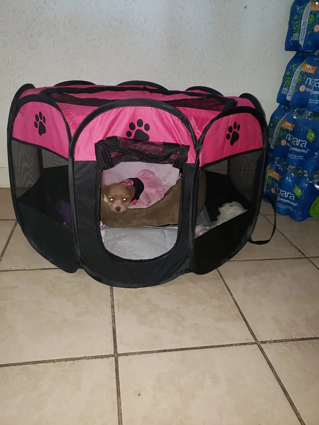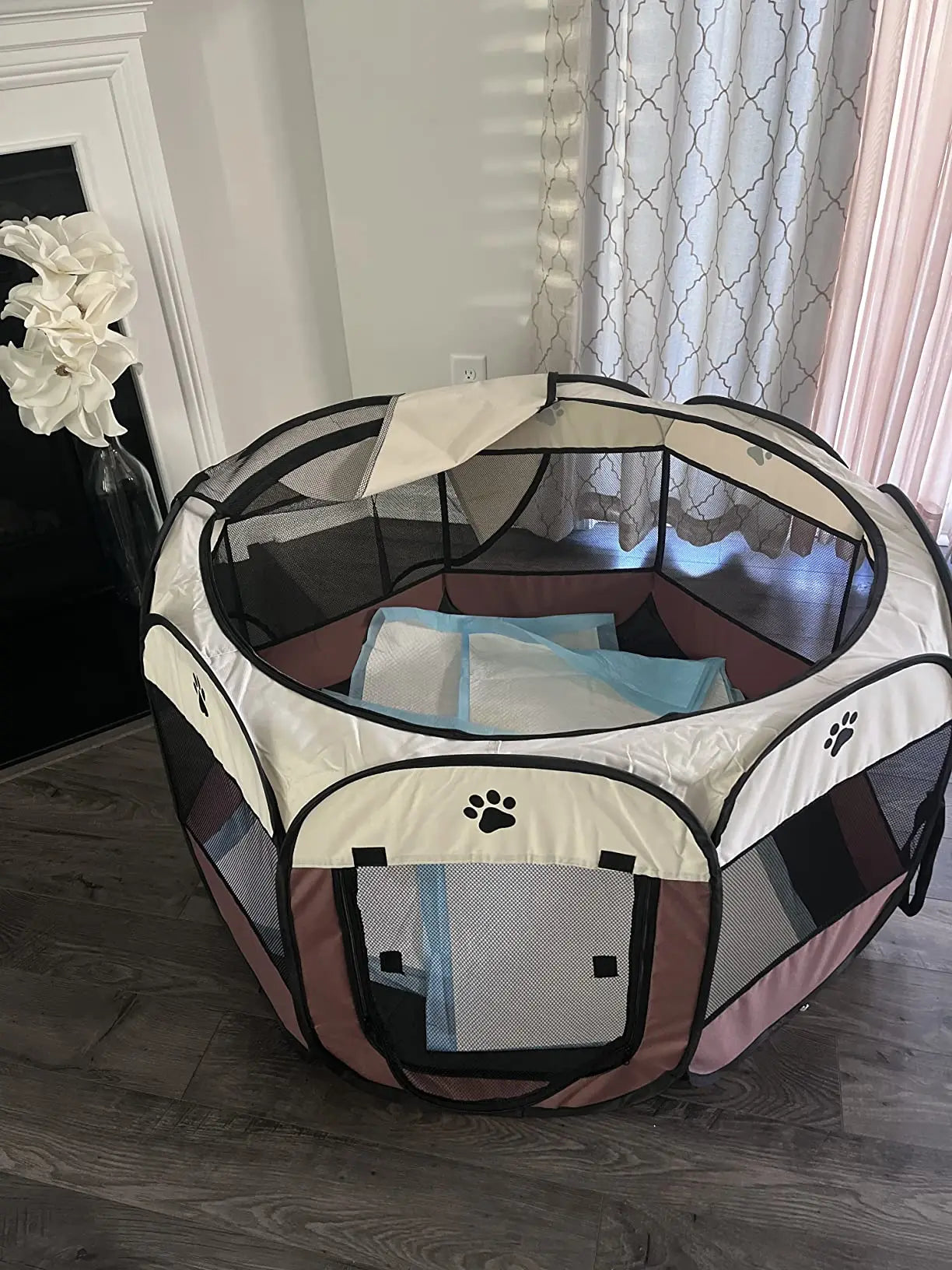 4.The right size and space:our folding pet tent is 29*29*17, it doesn't take up too much space, and it's easy to store.The interior space is large enough to accommodate your pet.Have enough space for your baby's daily activities or cat furniture (litter box, scratching post, cat bowl...)
