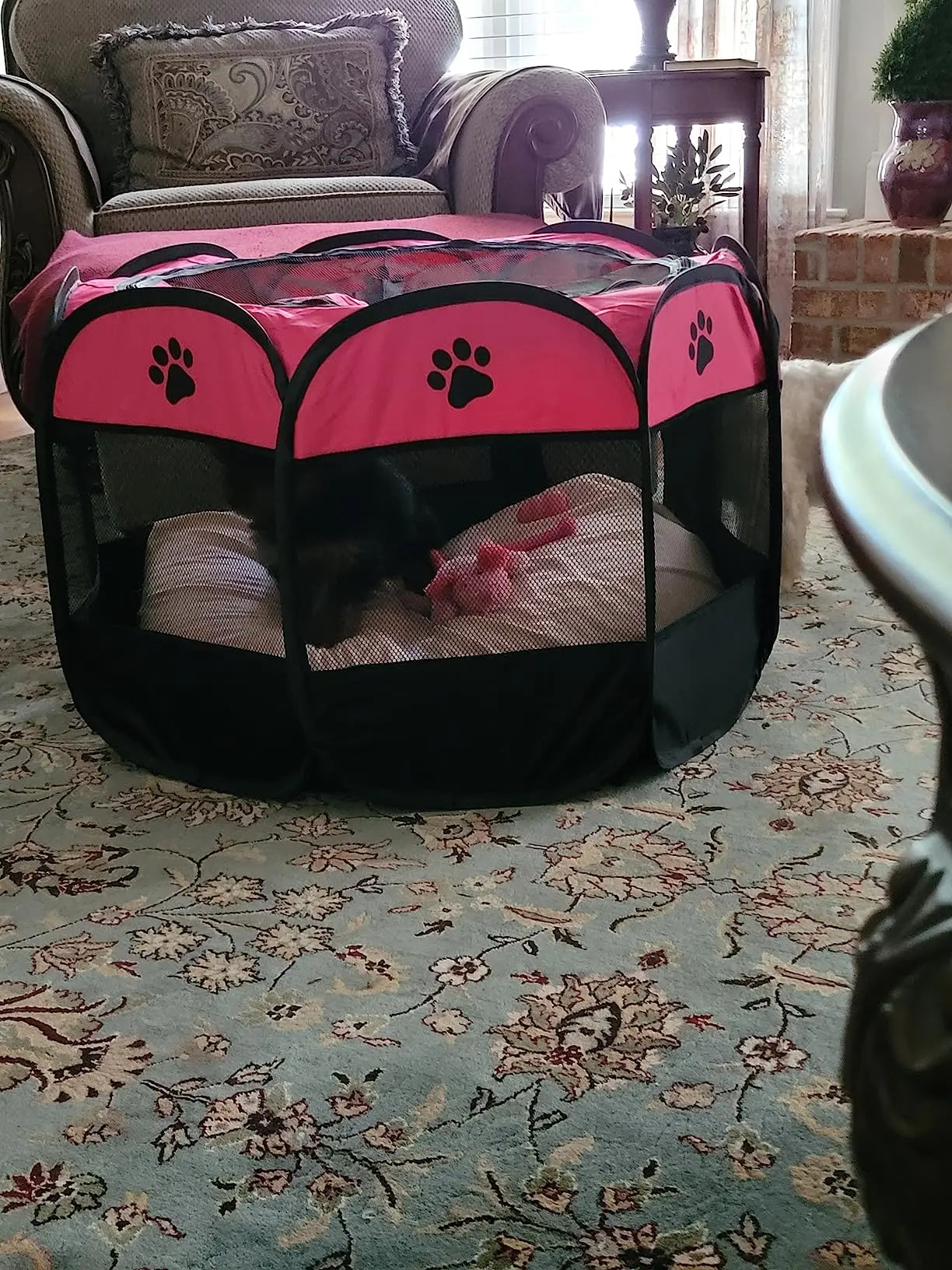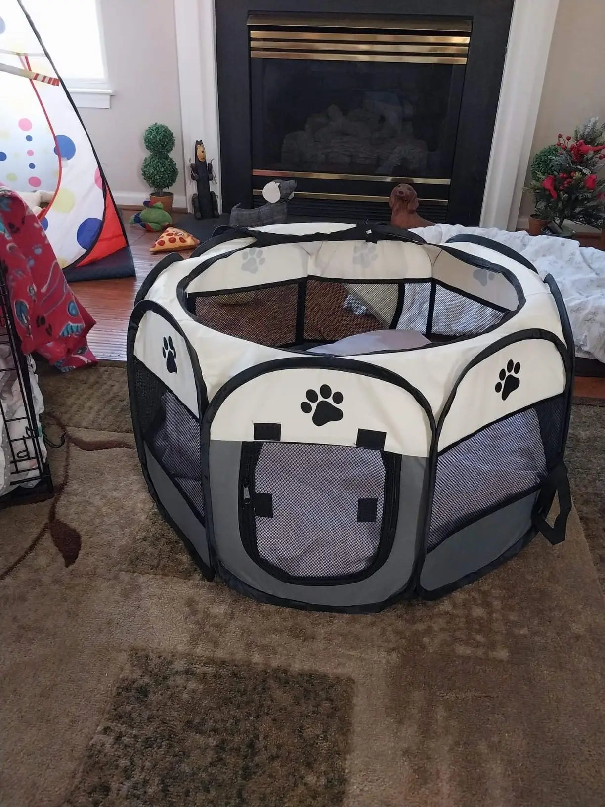 5.Safety and comfort:Pets are naturally curious and full of energy.After they play, set up a safe and comfortable lounge for them.There is plenty of room in the tent for pet toys, for kittens or puppies.