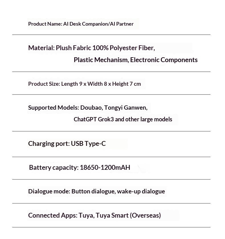 Material: Plush fabric made of 100% polyester fiber, plastic mechanism, electronic components