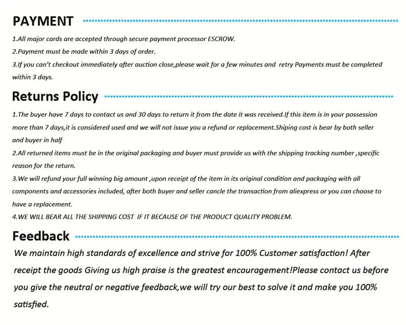 6. Transparent Policies: Our clear return, refund, and shipping policies provide peace of mind, knowing we stand behind our products.