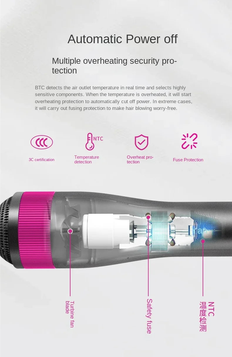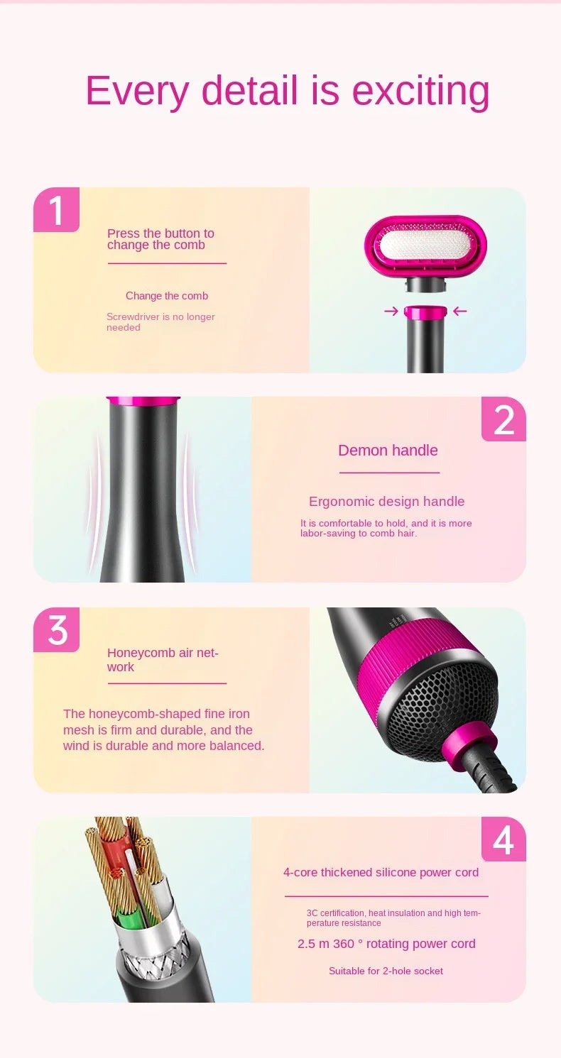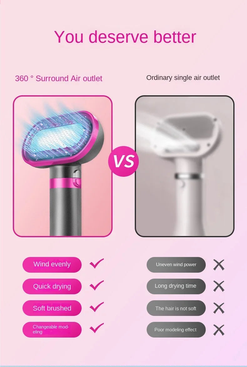 Combing design features: 360-degree runway-style circulating air, fine needles: easy to pull hair