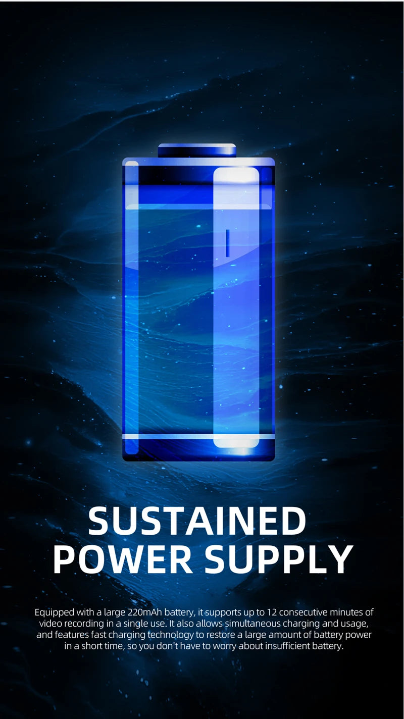 快速充電,延長使用時間:高效的 220mAh 電池支援 3C 快速充電。透過磁性 4 針 Type-C 接口,僅需約 70 分鐘即可充滿電。