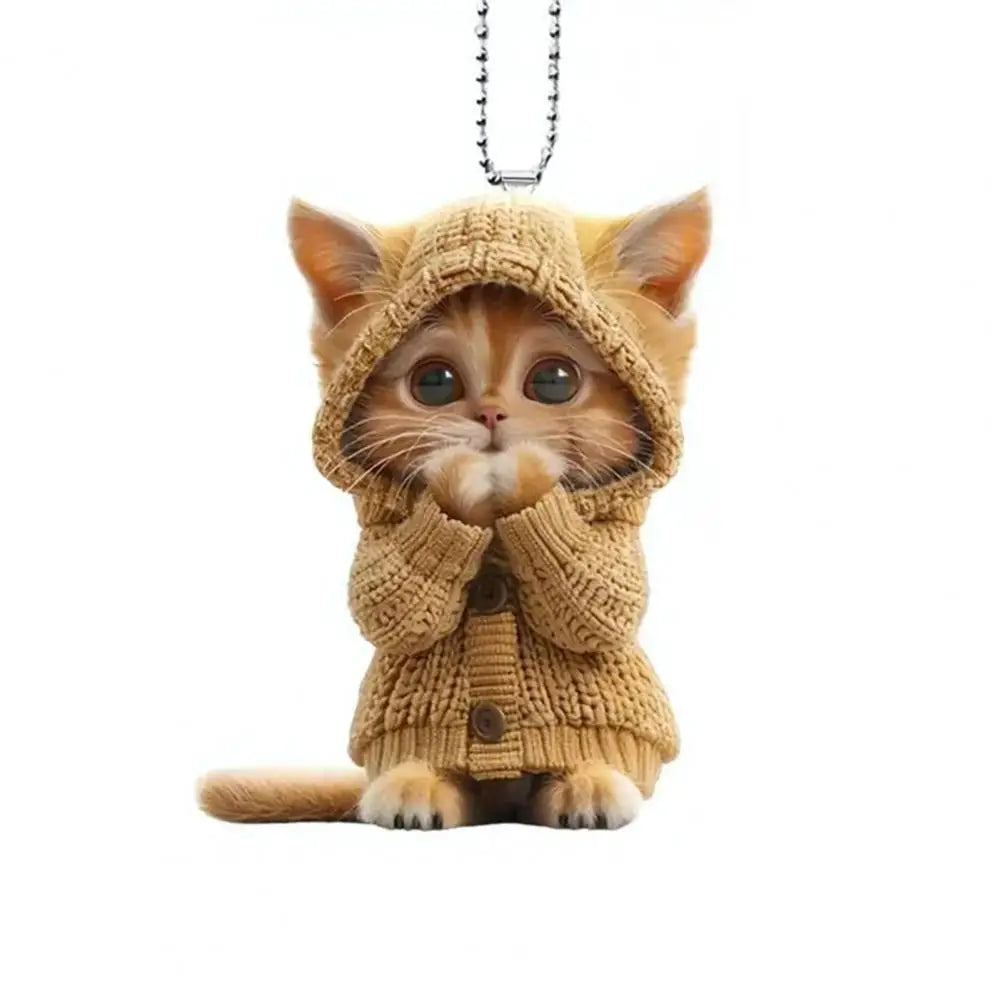 貓咪吊墜聖誕樹裝飾帶掛繩易於懸掛輕便汽車壓克力吊墜聖誕樹裝飾