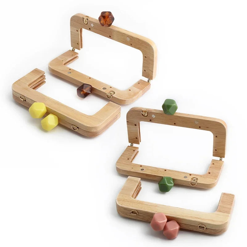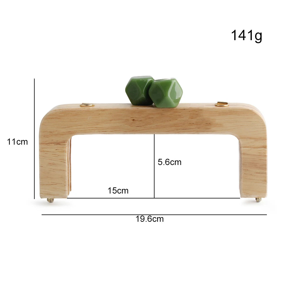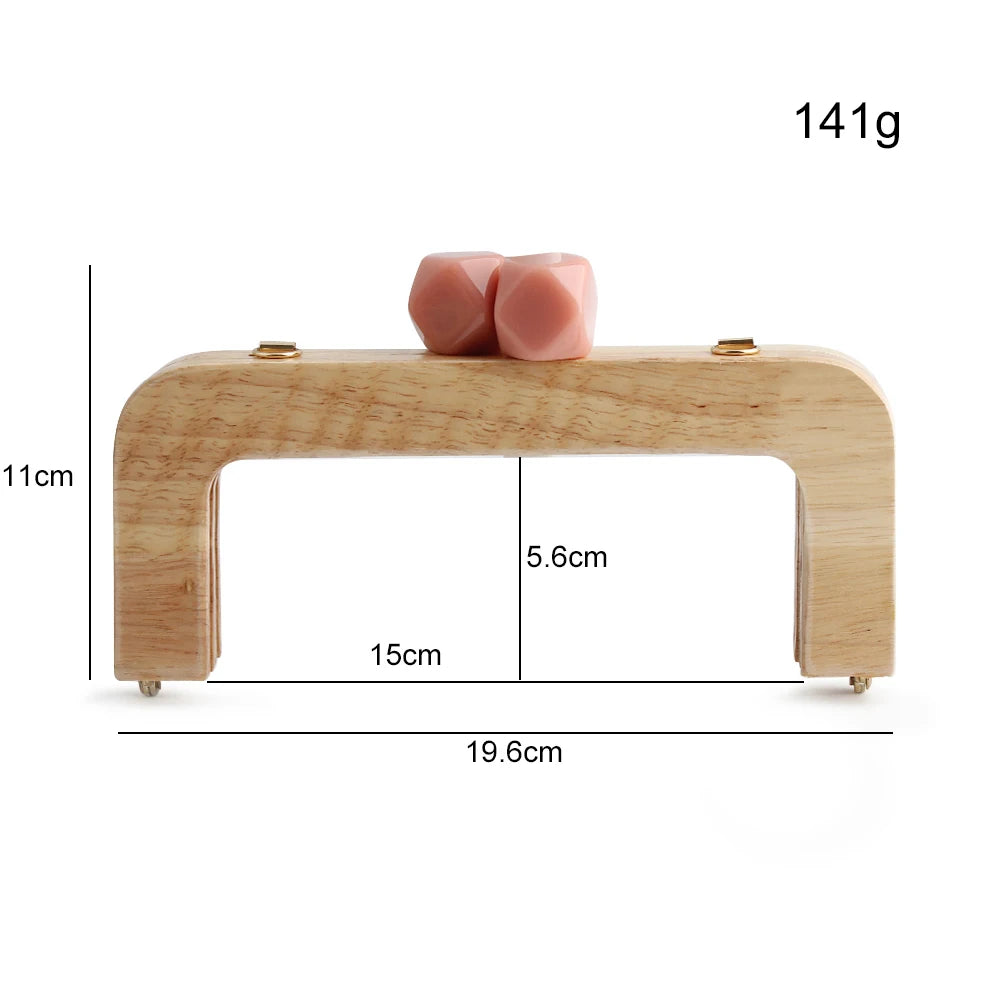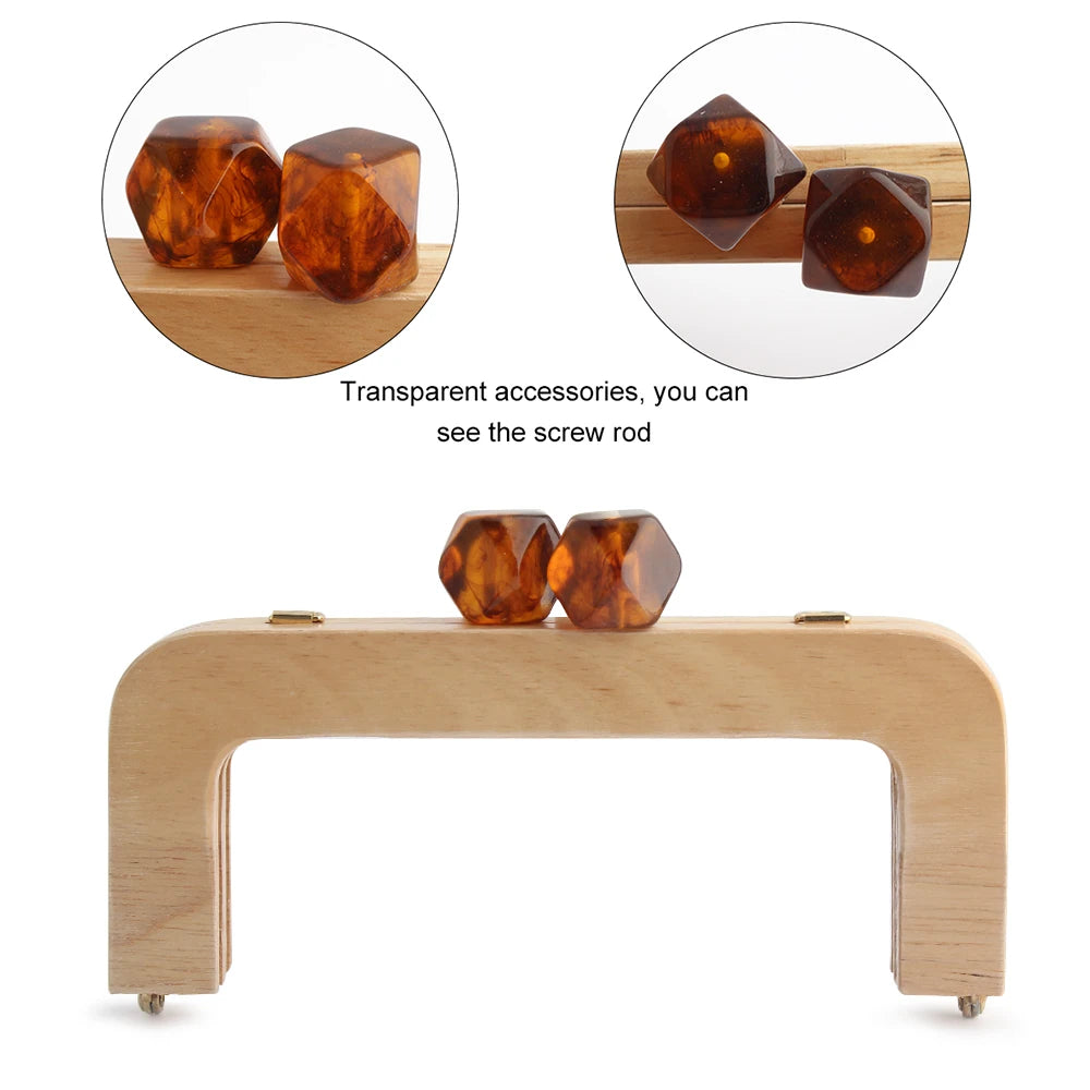 1PC 馬卡龍糖果色皮夾實木手柄框架復古包斜背包弧形實木樹脂頭金色DIY手柄