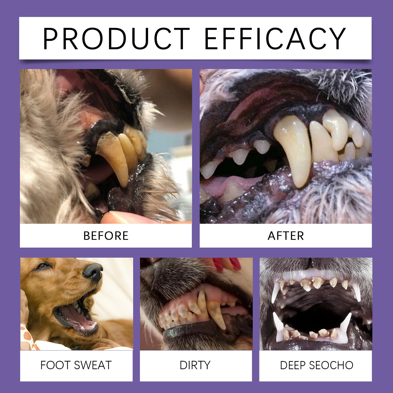 3.寵物牙垢去除工具採用天然成分製成,對寵物的牙齦和口腔溫和無刺激,可以幫助寵物清潔牙齒,使其口腔更健康。