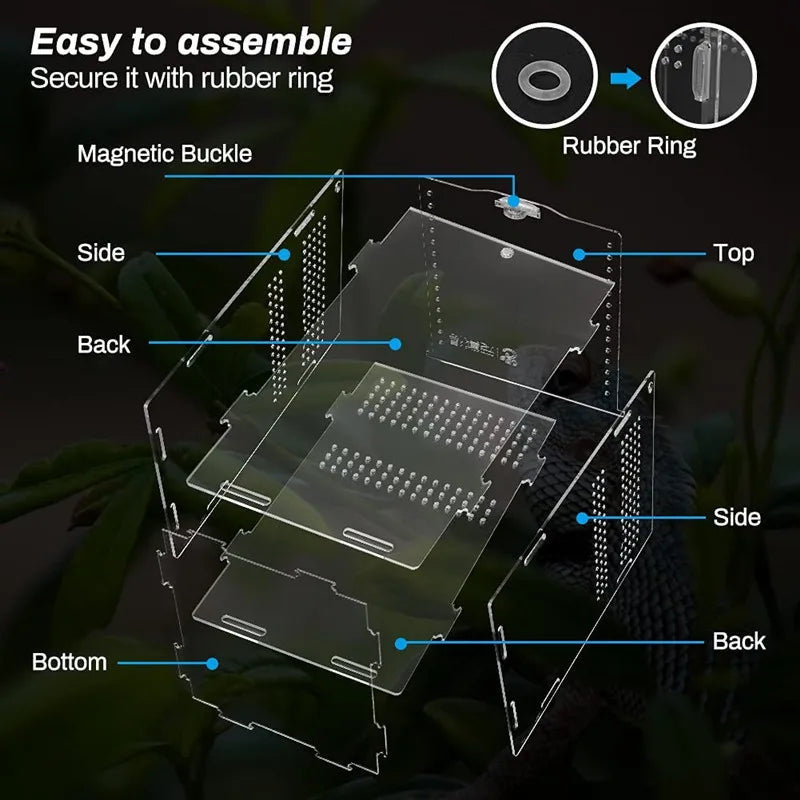 【壓克力爬蟲類飼養箱】這款爬蟲類餵食箱由堅固的壓克力材料製成,完全透明的繁殖箱將幫助您近距離觀察您的寵物。