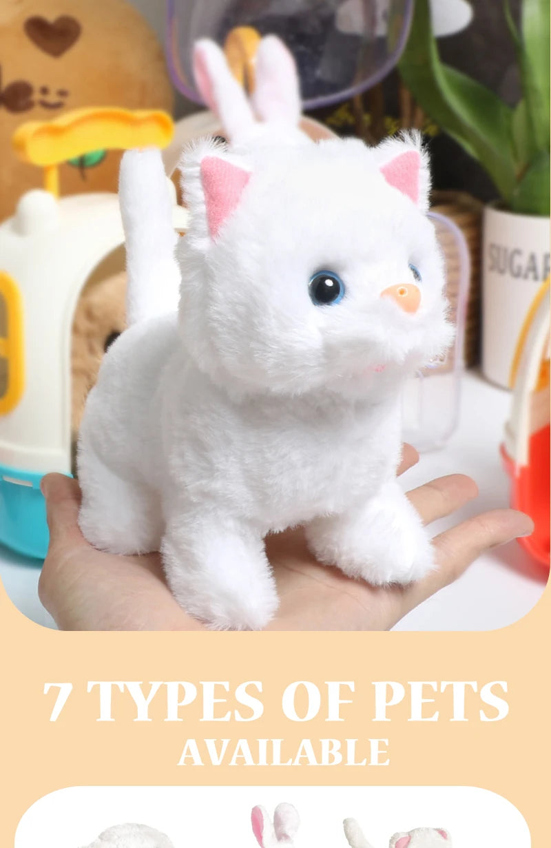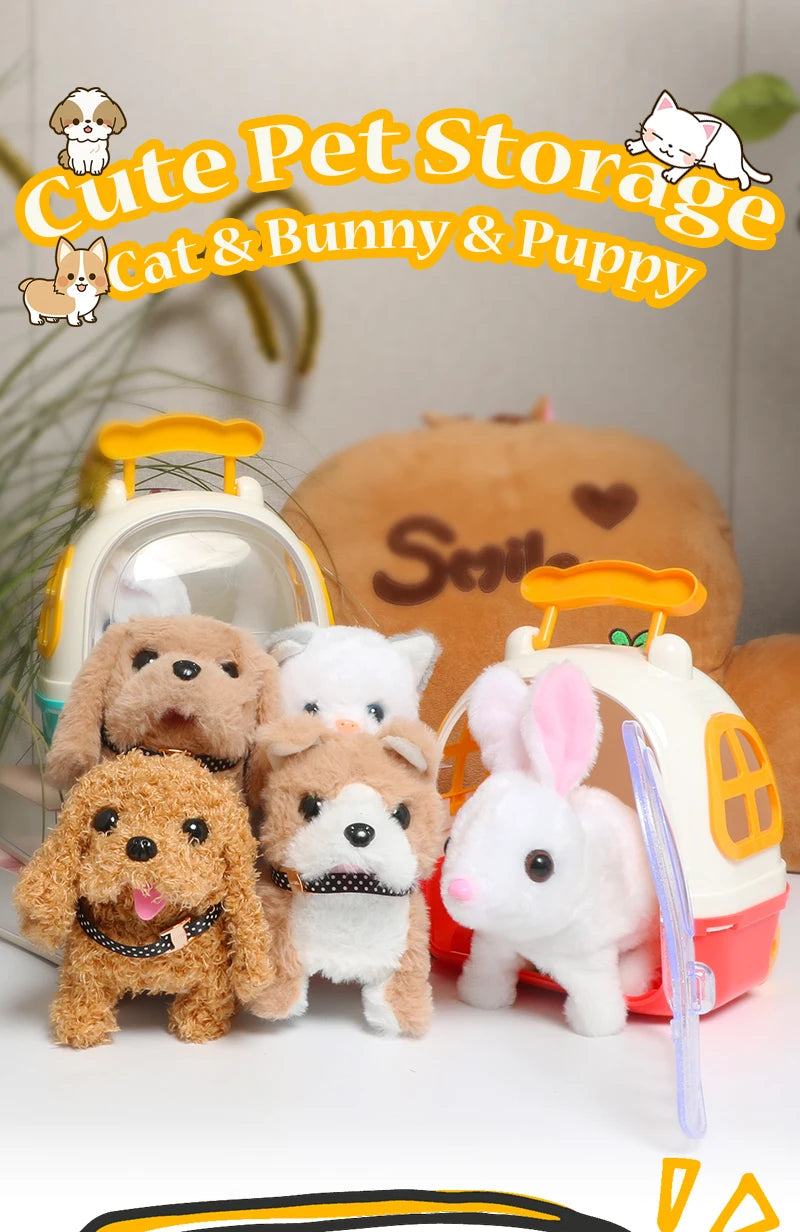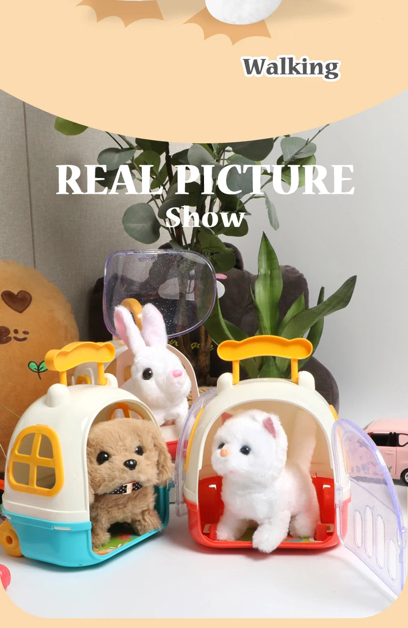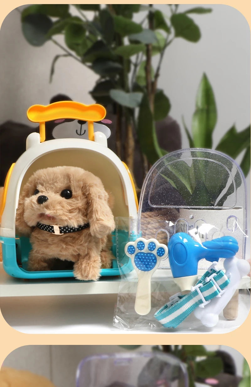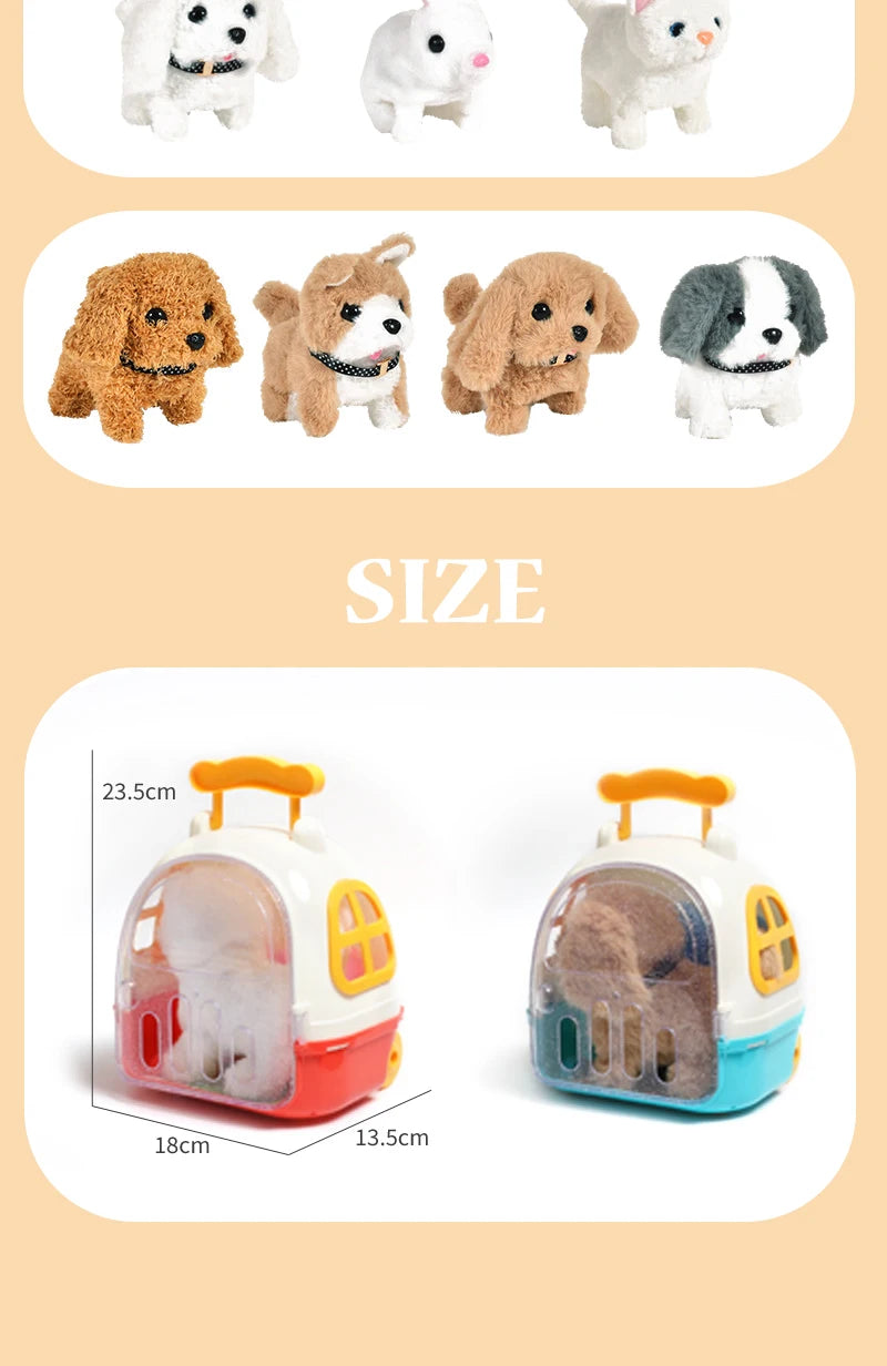- 裝上電池並打開電源,可愛的電動毛絨玩具狗就會像真狗一樣行走、吠叫、搖尾巴和點頭。當你拍打它的頭時,它也會發出聲音,可愛又有趣。