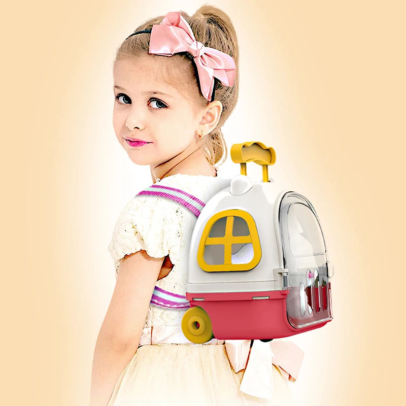 - 可愛的單肩包配有肩帶和輪子,孩子們可以將其背在背上或作為手提箱拉著。