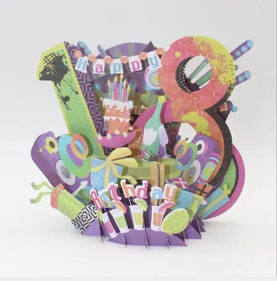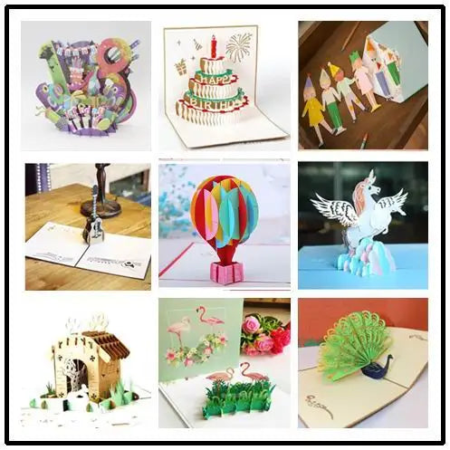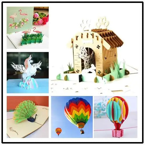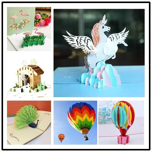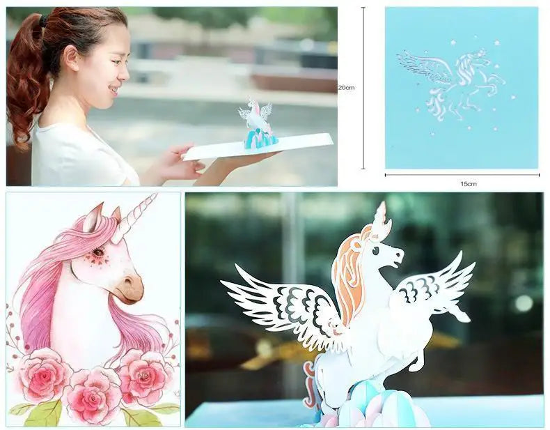 創意3D紙質生日彈出卡獨角獸飛馬節日派對邀請函賀卡明信片感恩節卡片