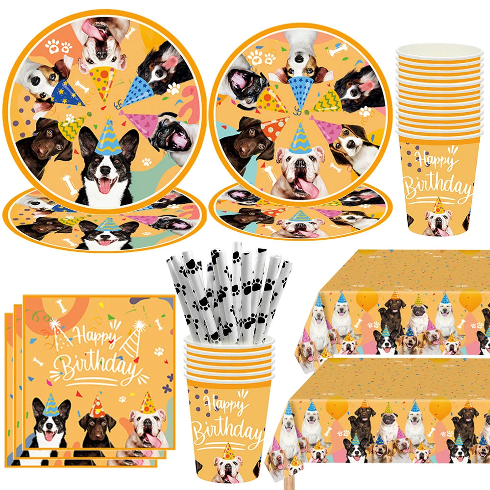 狗狗生日派對用品寵物狗一次性餐具紙盤餐巾紙杯小狗生日派對嬰兒派對裝飾品