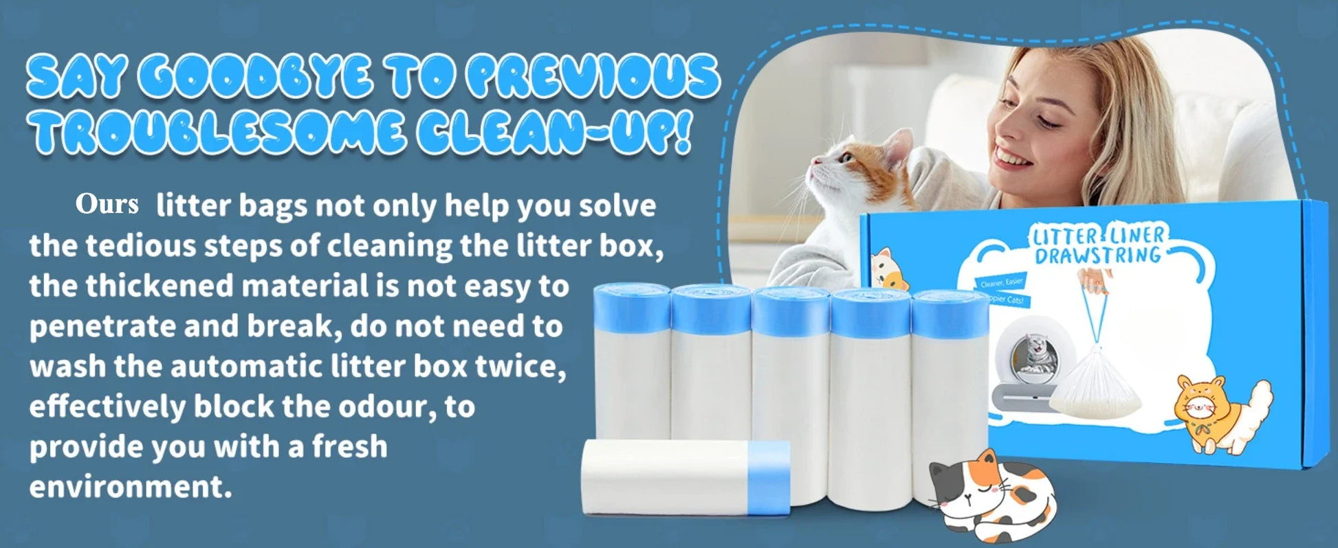為 EXPEDMAN、YQpet、PetCove、PETKIT、Meowant、Furrytail 和 NBBX 量身設計的貓砂袋,確保快速清除貓糞便。