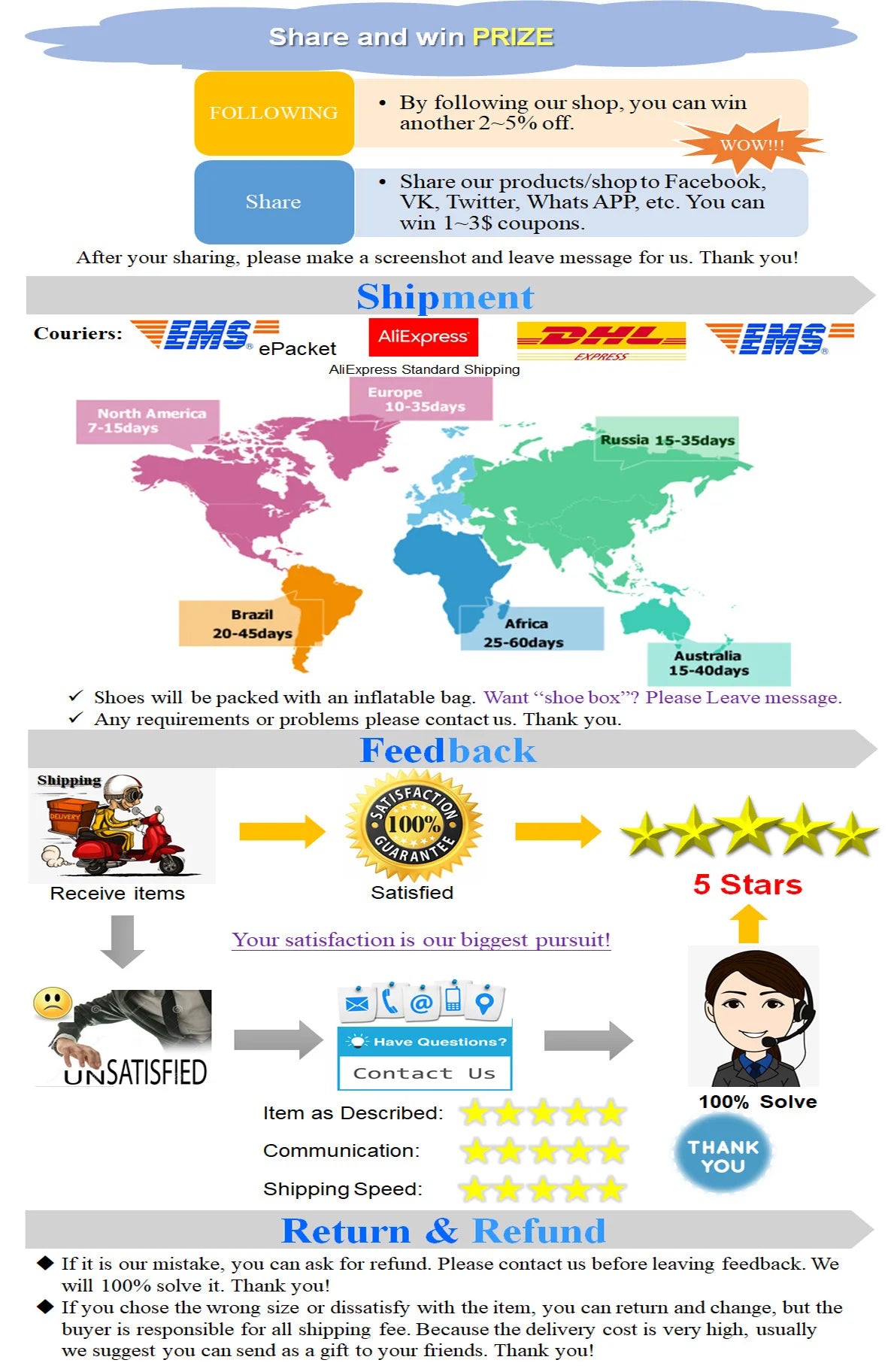 -由於運費昂貴,包裝沒有任何鞋盒,如果您堅持用盒子包裝,請聯繫我們的客服並支付 3 美元/雙來獲得一個盒子。