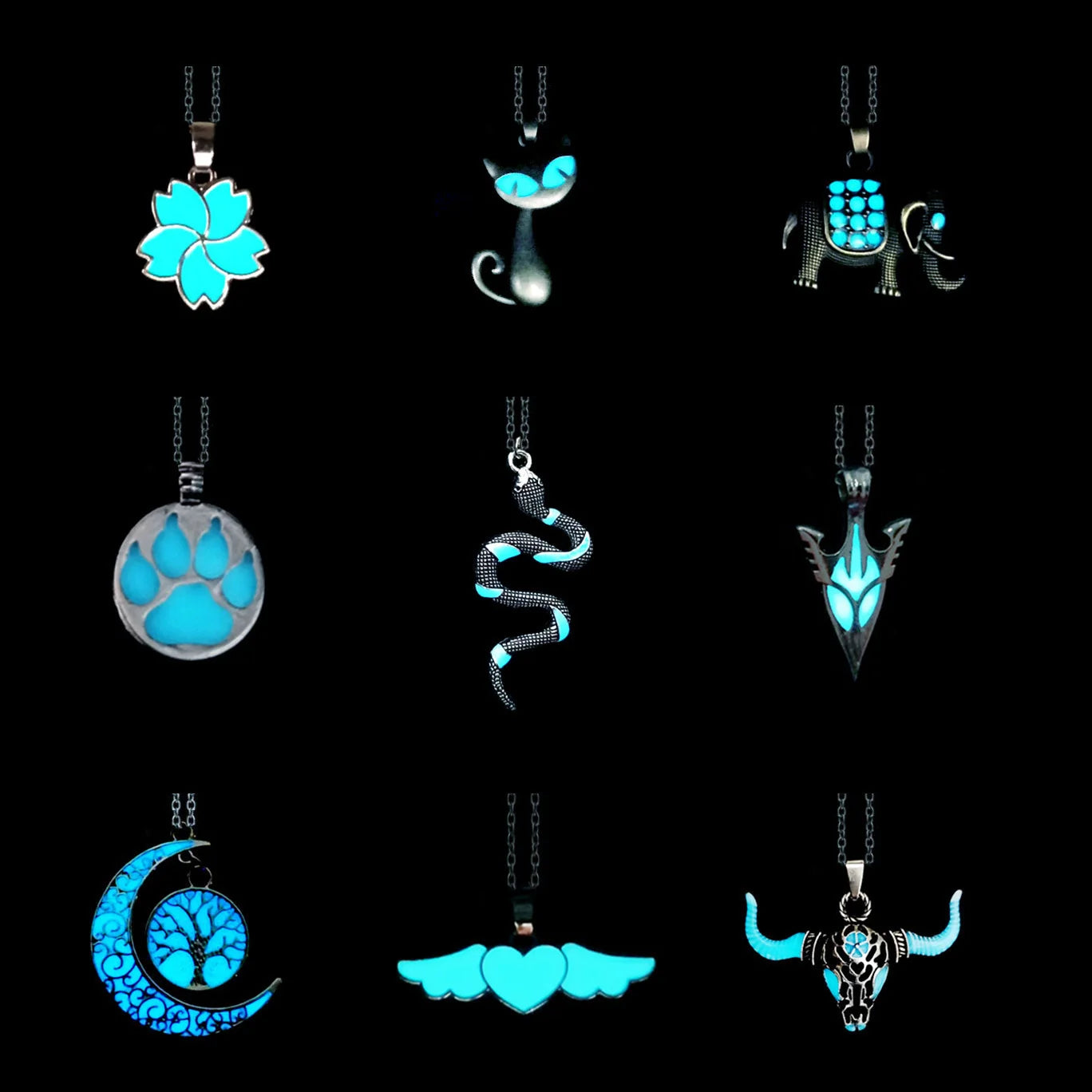 夜光蓮花貓蛇牛象吊墜項鍊夜光樹項鍊男女萬聖節禮物