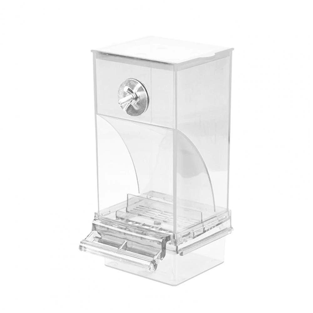 【完美尺寸】適合籠子尺寸的無混亂餵鳥器:3.34 * 2.95 * 7.28 英寸,完美的丙烯酸自動鳥籠餵食器,適用於所有小鳥,例如長尾小鸚鵡,椋鳥,八哥,愛情鳥,金絲雀,小錐尾鸚鵡和其他類似大小的鳥類。