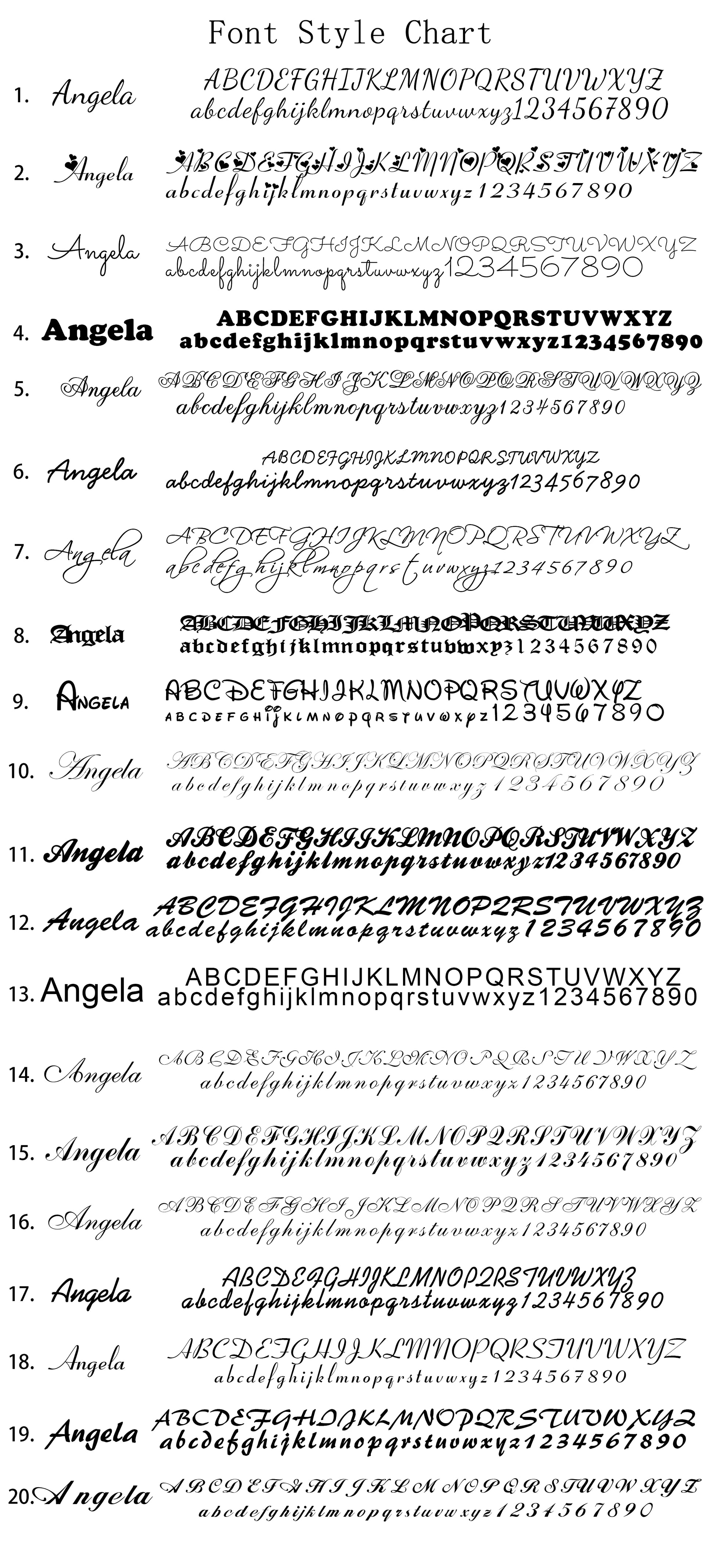 如果沒有提供字體,您將收到訂單圖片中的字體,即羅馬字體