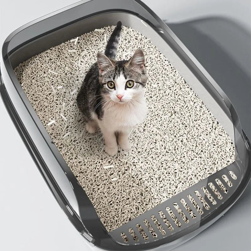 【易於清潔】:開放式托盤可拆卸,高邊貓砂托盤,結構簡單,可拆卸設計,易於清潔,可重複使用。