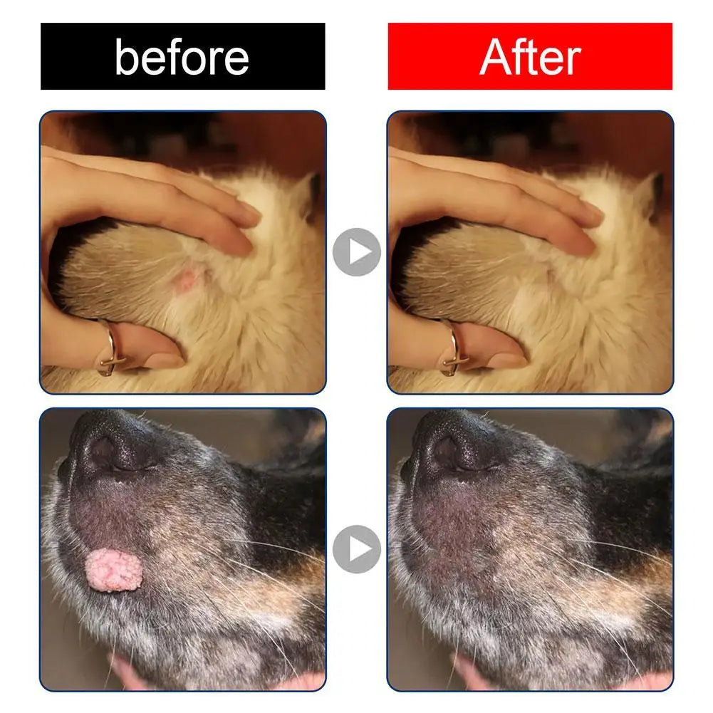 用心呵護:我們全天然、無痛的除疣產品,是恢復狗狗皮膚健康的好方法。看到我們的除疣產品能夠完美地呵護眾多愛犬,我們倍感欣慰。我們愛狗狗,用心呵護我們的除疣產品。