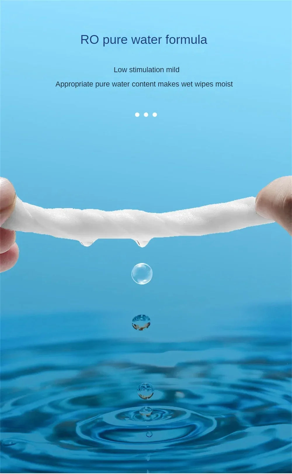 7.【安心配方】:RO純水配方,低刺激,溫和清潔,適當的純水含量,使濕紙巾具有滋潤度