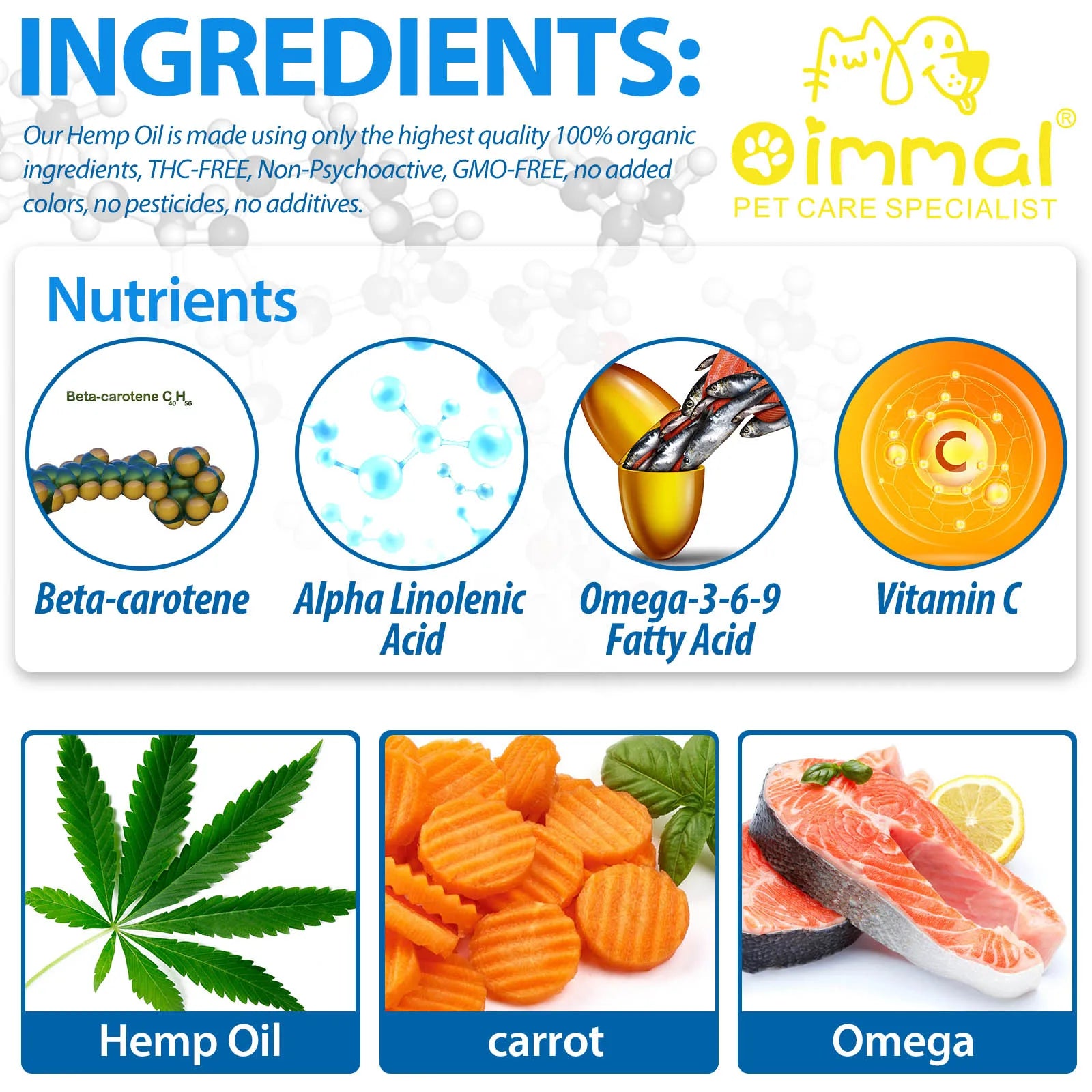 大麻油、維生素 C 和 E、Omega 3-6-9