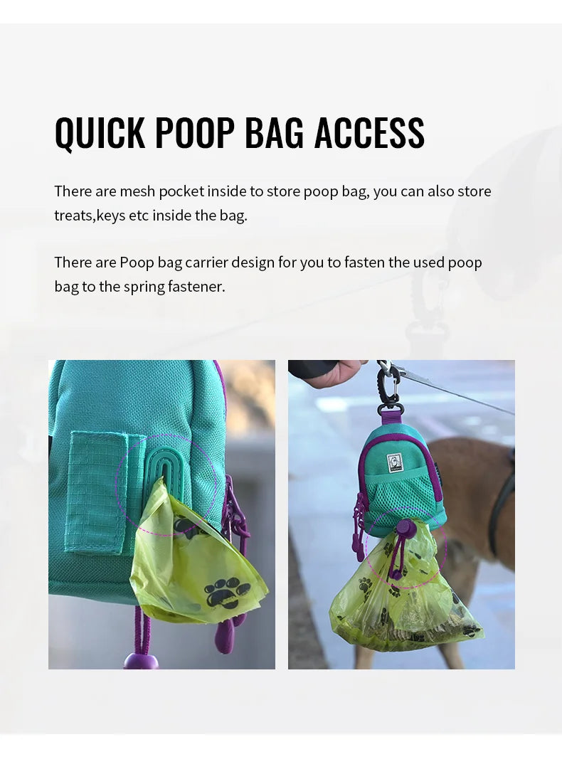 這款寵物包採用永續材料製成,體現了我們對環保寵物護理的承諾,是您遛狗裝備中負責任的補充。此外,它還能解放您的雙手,讓您專注於訓練愛犬,或與毛茸茸的朋友共度美好時光。