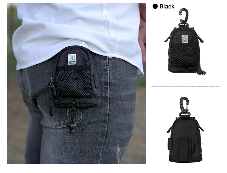 使用可調節的夾子將袋子牢固地固定在皮帶、腰部或皮帶上。