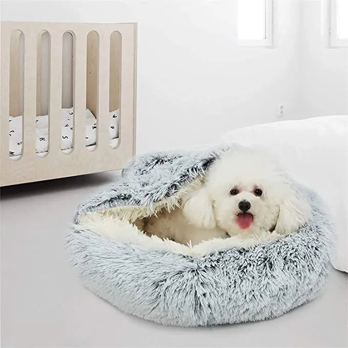 冬季加長毛絨寵物貓床圓形貓墊貓屋保暖貓籃貓睡袋貓窩貓窩二合一適用於小型犬貓
